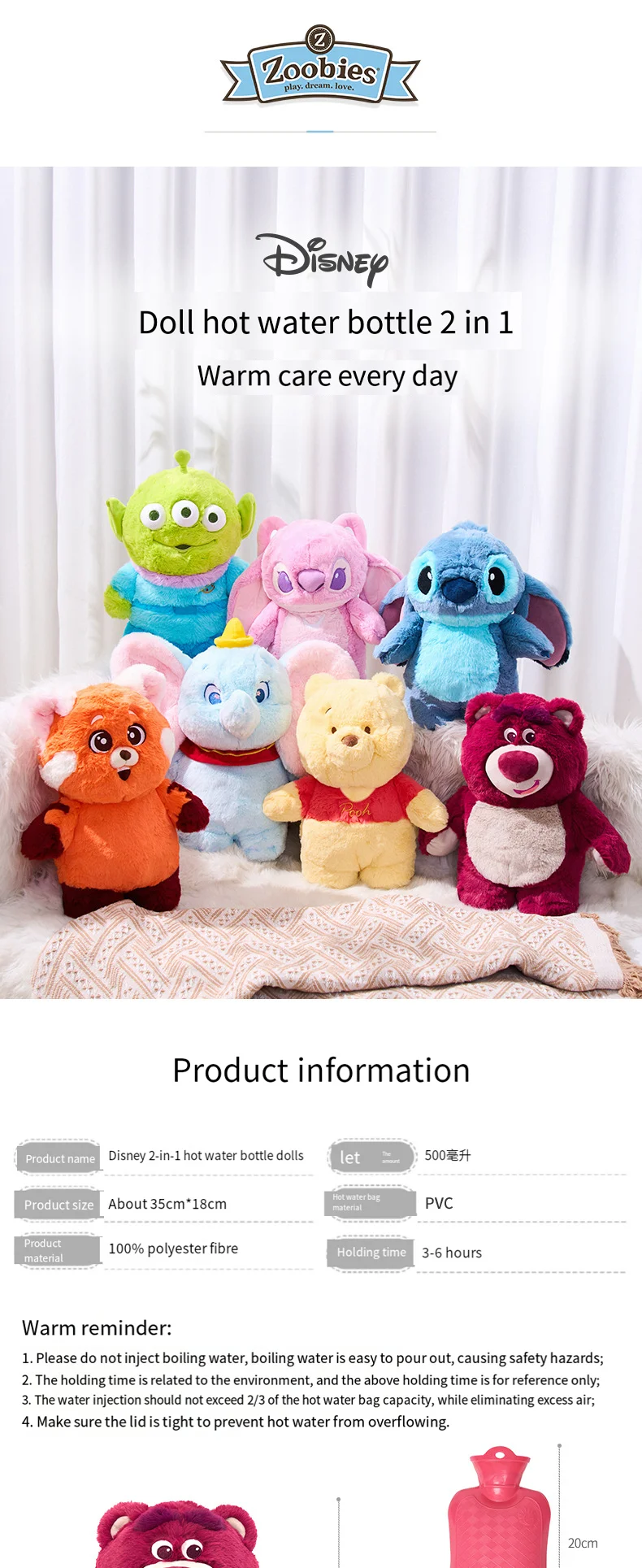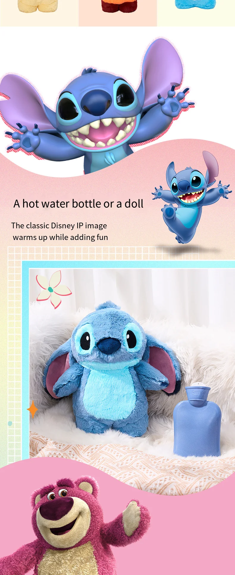 2025 Disney Stitch Plush Hot Water Bottle Kawaii Winter Extra Large Hot Water Bottle Home Water Filling Women’s Birthday Present