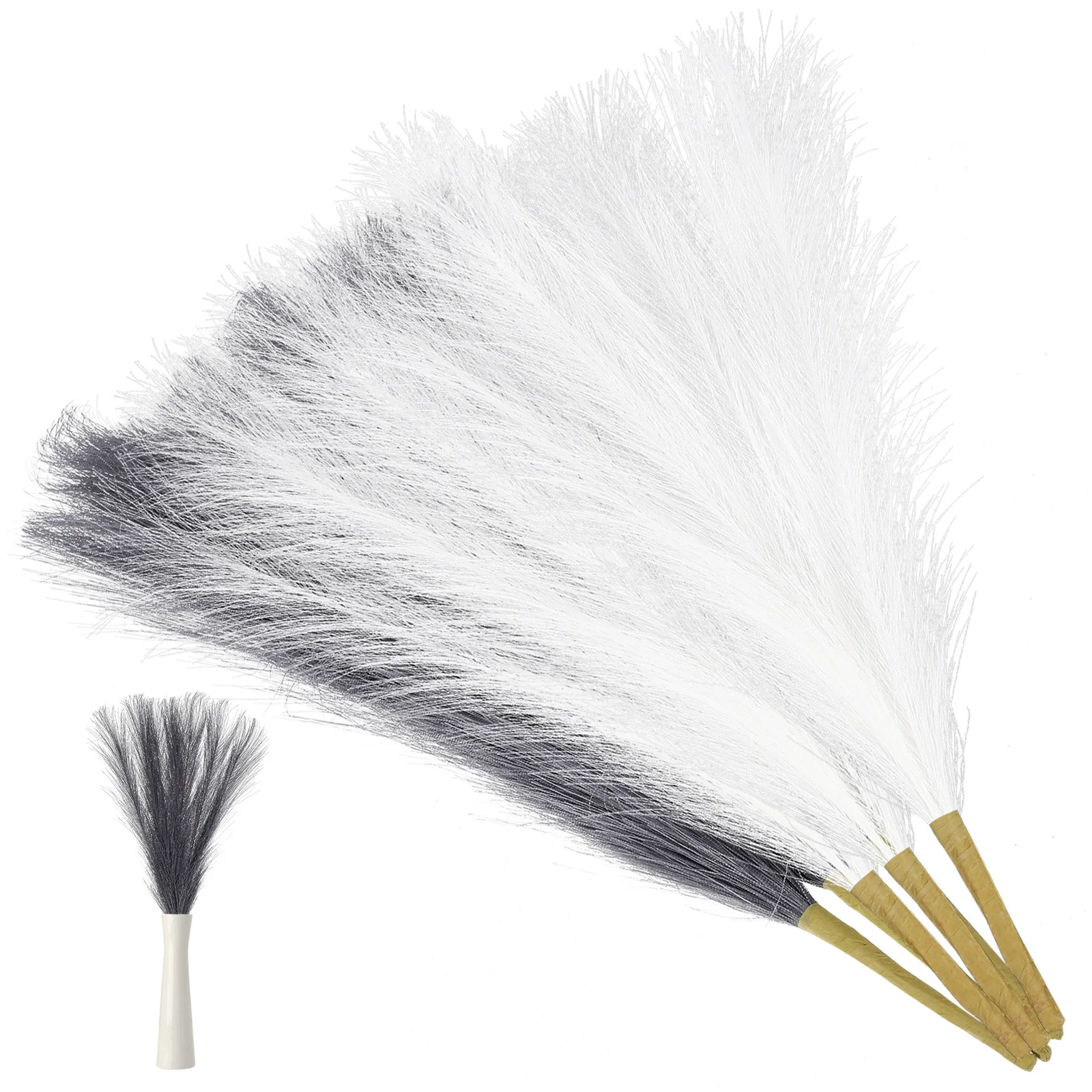 6支人造蒲苇草短茎,可调节铁丝缠绕,天然色干蒲苇草枝,适用于婚礼餐桌